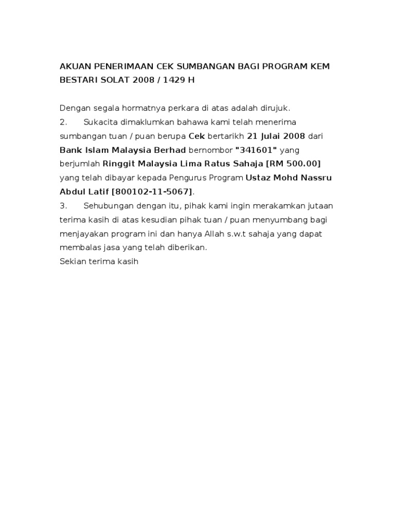 Contoh Surat Akuan Terima Cek Contoh Surat